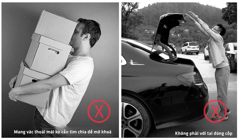 Mercedes Benz Hand-free access đá cốp mở cửa tự động có thể nói là 1 option tiện lợi vô cùng khi chúng ta mang vác đồ đạc lên cốp xe . chỉ cần đá nhẹ chân vào gần dưới xe sẽ tử động mở cốp và đóng cốp không cần phải bấm chìa khoá . Hàng chính hãng bảo hành 24 tháng
