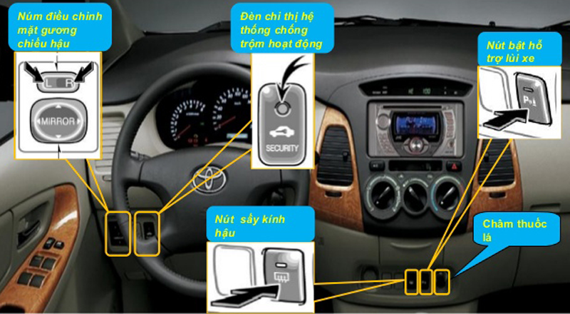 Điều chỉnh trên gương chiếu hậu, cửa, ghế ngồi