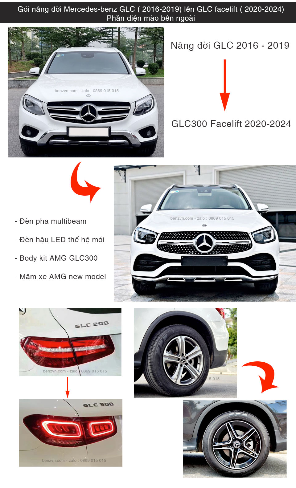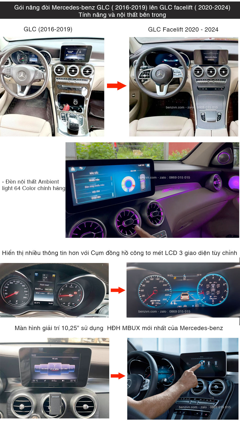 Gói nâng đời full Ngoại thất và Nội thất cho dòng xe Mercedes Benz GLC các model sx 2016-2019 lên đời facelift 2020. chiếc xe được cải lão hoàn đồng khá hoàn hảo với nhiều tính năng cực kỳ đáng giá của model facelift mới như :