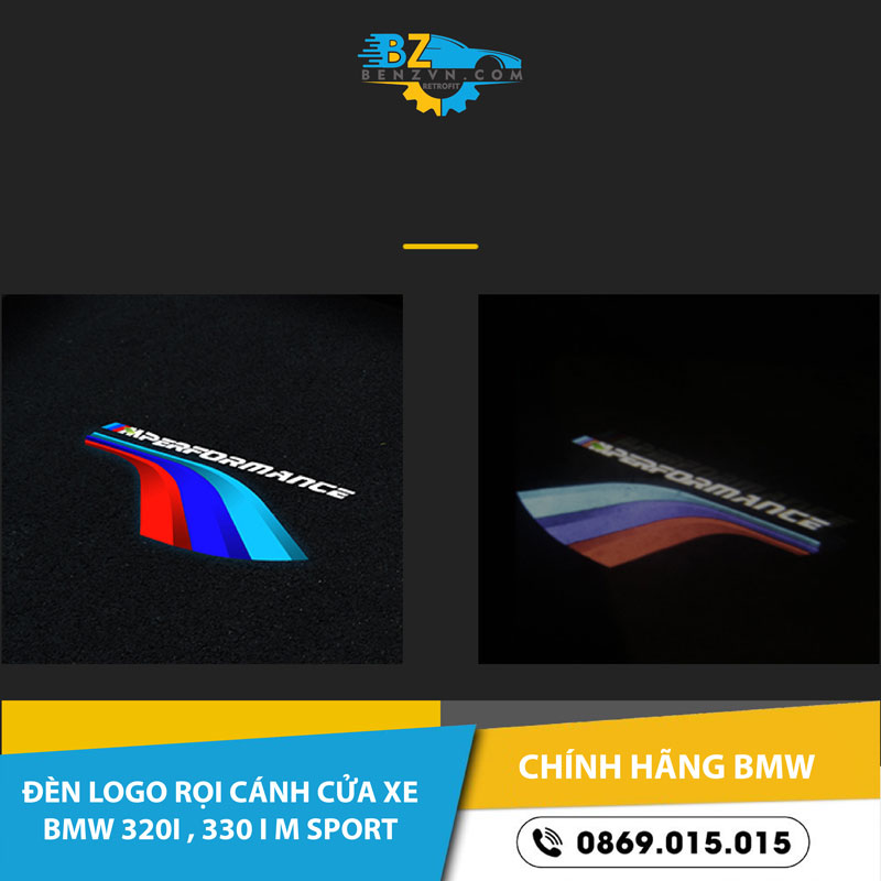 Đèn logo rọi cánh cửa xe BMW 320i và 330i M Sport là một phụ tùng để tăng cường tính năng và trang nhã cho xe. Nó sẽ sáng khi mở cánh cửa xe và tắt khi đóng cánh cửa. Đèn logo này là một phụ tùng thay thế cho đèn logo gốc của xe hoặc là một thiết bị bổ sung để tăng cường tính năng và trang nhã cho xe.