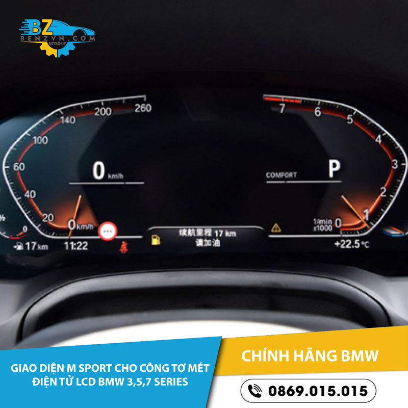 Giao diện M Sport cho công tố mét điện tử LCD BMW 3, 5, 7 series là một phần mềm hoặc giao diện đồ họa mới cho công tố mét điện tử LCD của xe BMW 3, 5, 7 series. Nó có thể được cài đặt trên công tố mét gốc hoặc là một công tố mét điện tử LCD mới với giao diện M Sport. Giao diện này sẽ thay đổi giao diện hiển thị của công tố mét, bao gồm màu sắc, hình ảnh, biểu tượng và các thông số hiển thị, để phù hợp với phong cách M Sport của xe.