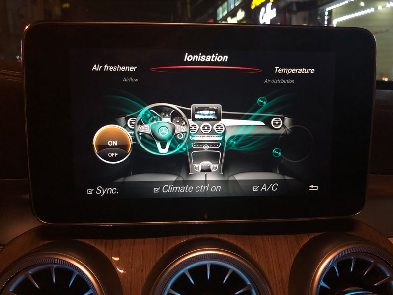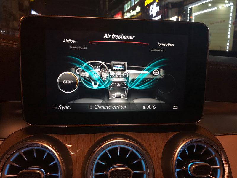Air Freshener là hệ thống tạo mùi hương của hãng Mercedes Benz được tích hợp sẵn chức năng điều khiển trên màn hình chiếc xe nguyên bản. Nước hoa được đặt trong hộp để đồ phía trước. Mùi hương được bơm trực tiếp vào khoang xe thông qua các cửa gió điều hoà . Với 5 hương vị nước hoa khác nhau được hãng Mercedes nghiên cứu tỉ mỉ nhiều năm chuyên dùng trên xe hơi. bất kể khi nào bước vào xe đều có hương thơm nhẹ nhàng, dễ chịu tạo cảm giác sang trọng và tươi mát.