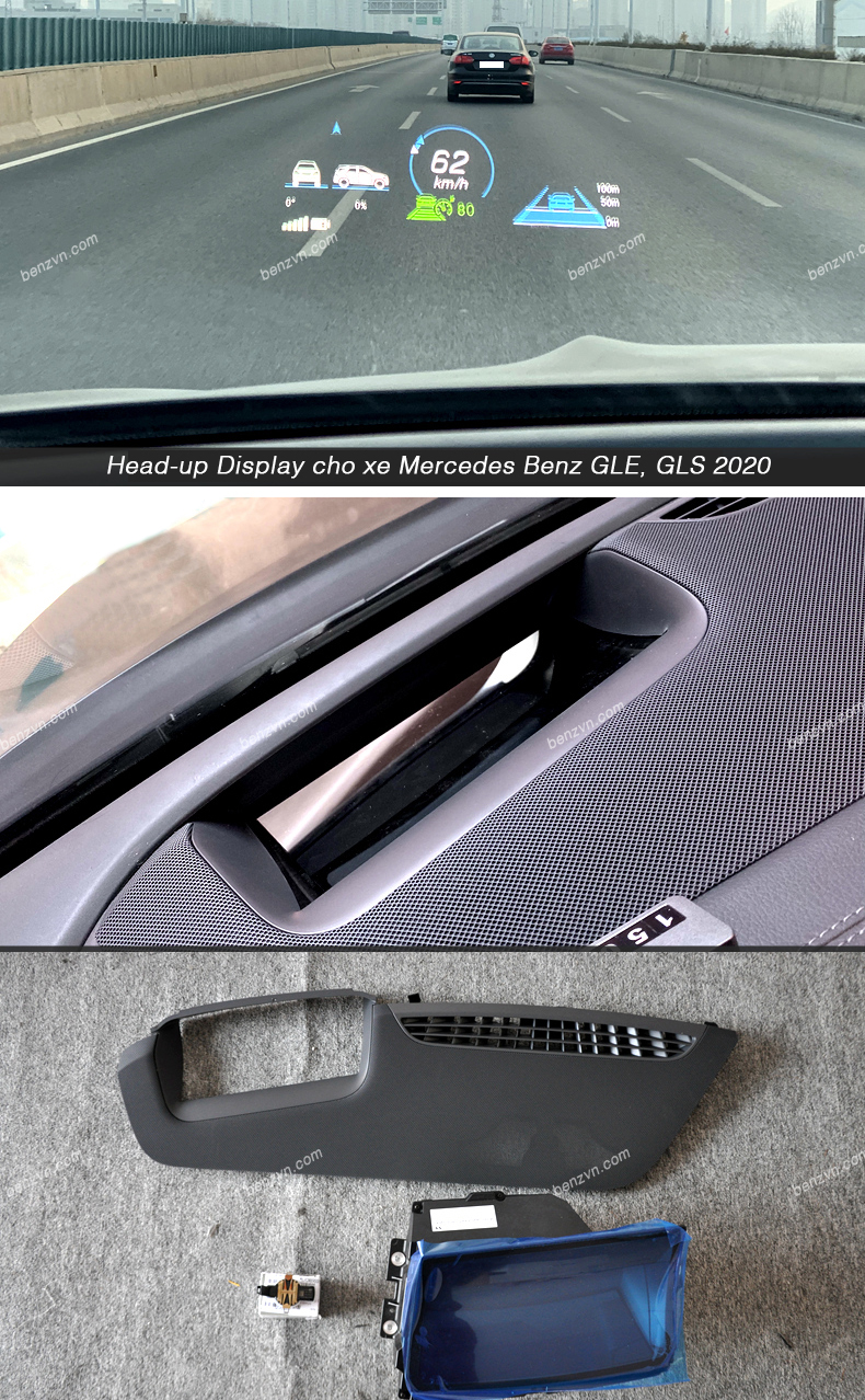 Một trong option hỗ trợ người lái xe trực quan nhất đó là bộ Head-Up Display màn hình hiển thị thông tin trên kính lái. Với rất nhiều thông tin như: Tốc độ, Dẫn đường, đọc biển báo giao thông, cruicontro ... Tuỳ từng đời xe với rất nhiều thông tin được đưa lên trực quan giúp người lái xe dễ dàng kiểm soát khi điều khiển xe.