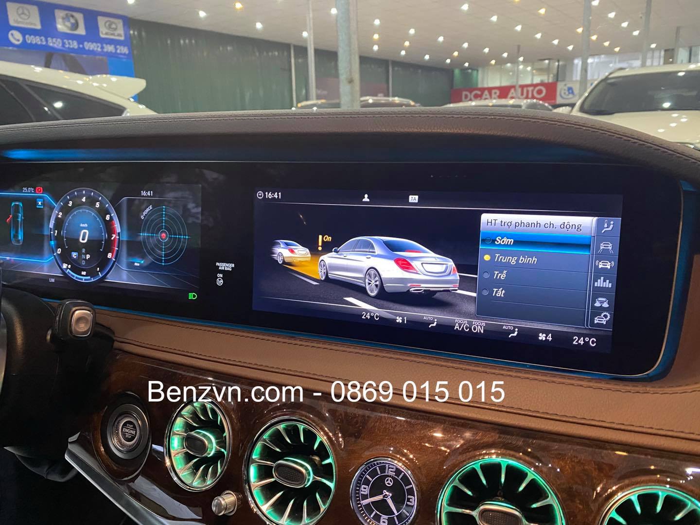 Chiếc Mercedes-benz S450 bản thường với những bổ sung hợp lý cần thiết như: hệ thống phanh khẩn cấp, hệ thống cảnh báo điểm mù, và dàn loa trần chính hãng burmester siêu đẹp