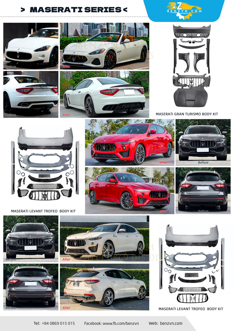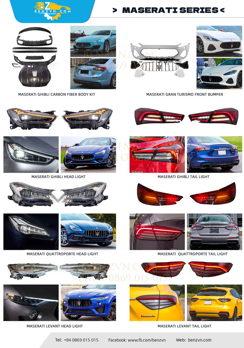 Bạn là chủ sở hữu của chiếc xe Maserati và muốn tăng cường tính thể thao và độc đáo cho chiếc xe của mình? Chúng tôi cung cấp một bộ sưu tập phụ kiện nâng cấp xe Maserati bao gồm body kit, mâm xe, bộ ốp nội thất và nhiều hơn nữa. Chúng tôi cam kết cung cấp những sản phẩm chất lượng cao, được thiết kế đặc biệt để tăng cường tính thể thao và độc đáo cho chiếc xe của bạn.