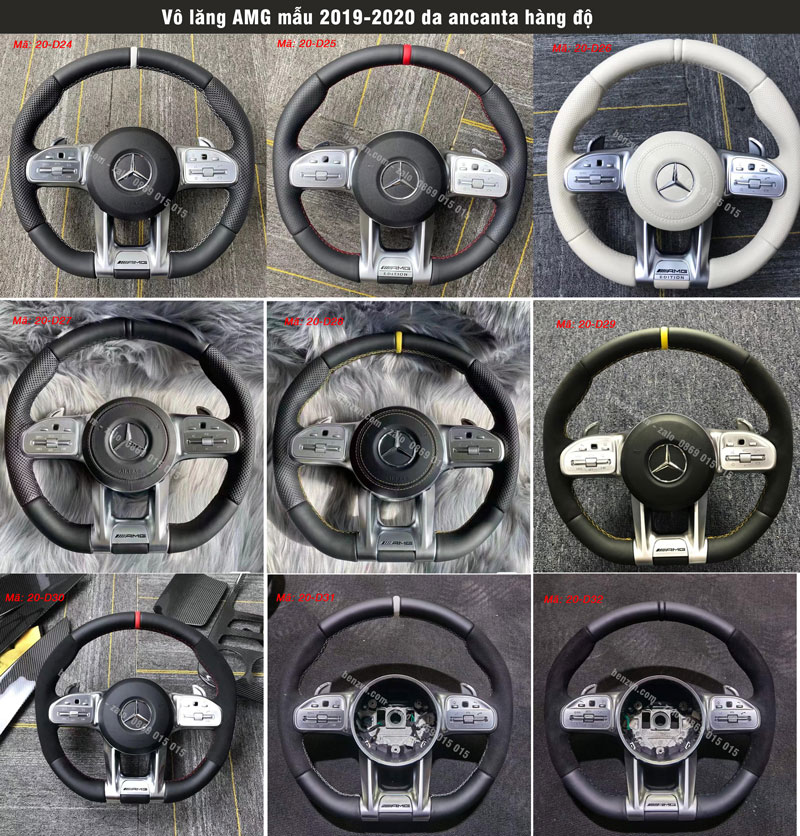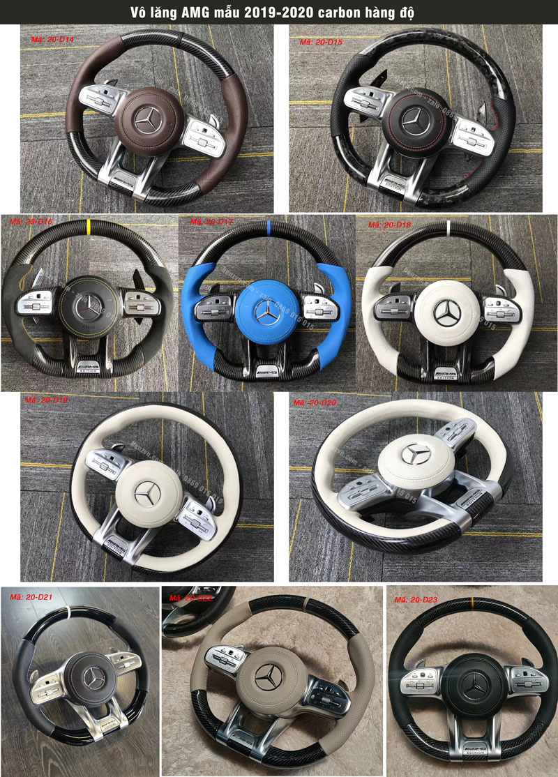 Kiểu mẫu Vô lăng Mercedes AMG form 2019 - 2020 dạng D-cut túi khí tròn có thể lắp được nhiều dòng xe và đời xe mercedes benz. Mẫu này có thể gắn thêm núm xoay AMG ( chức năng chuyển chế độ lái ) ngay trên vô lăng. Những Xe có thể lắp thêm chế độ lái như dòng : GLC, C, E ,S, GLS ( W167), GLE ( W167), GLB, A35, GT, G63 . Sản phẩm được chia ra làm 2 loại Hàng chính hãng và Hàng độ lại.